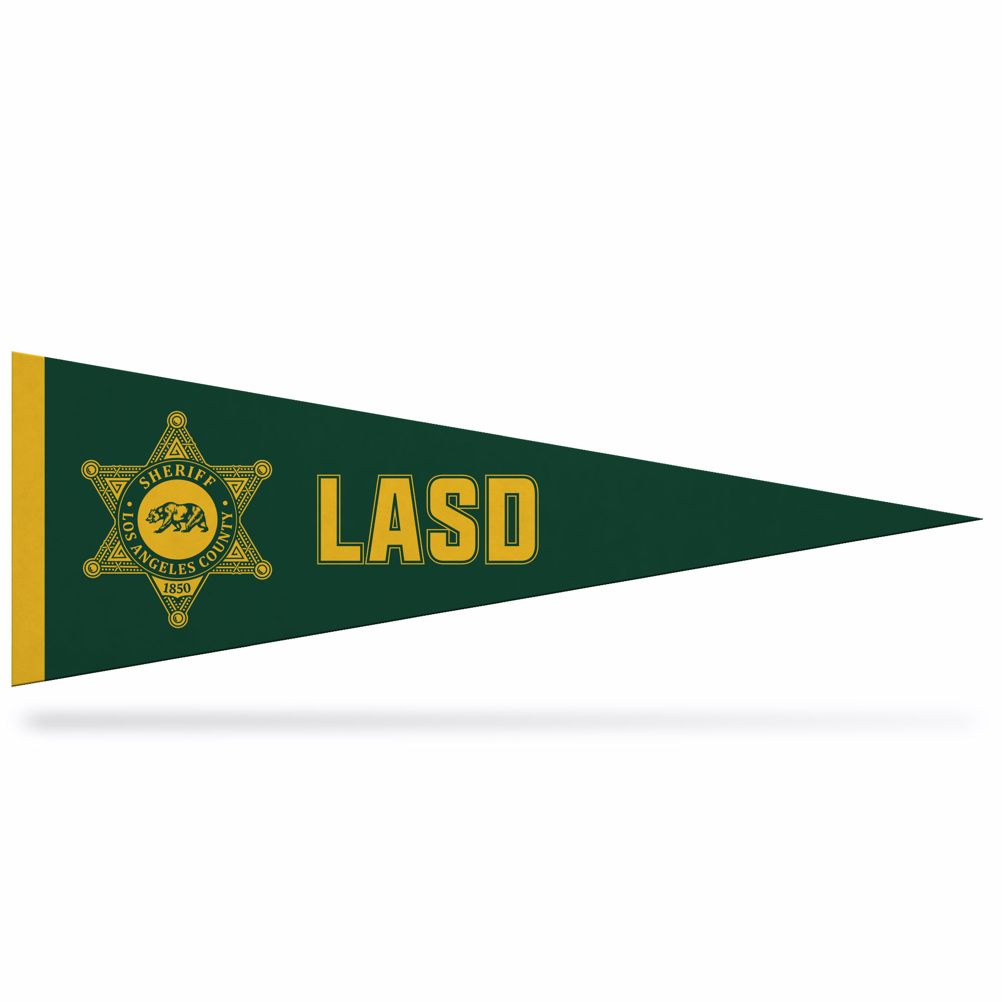 Badge/LASD Pennant (5″ x 15″) $6.99 Description Description Item Number: 1955 Color: green Price: $6.99 Badge/LASD Pennant (5" x 15") quantity Add to cart Categories: All Products, Novelty Related products LASD Badge Money Clip $11.99 Medium Gift Bag $6.50 Vintage Deputy Sheriff-95-Tapestry Blanket $72.00